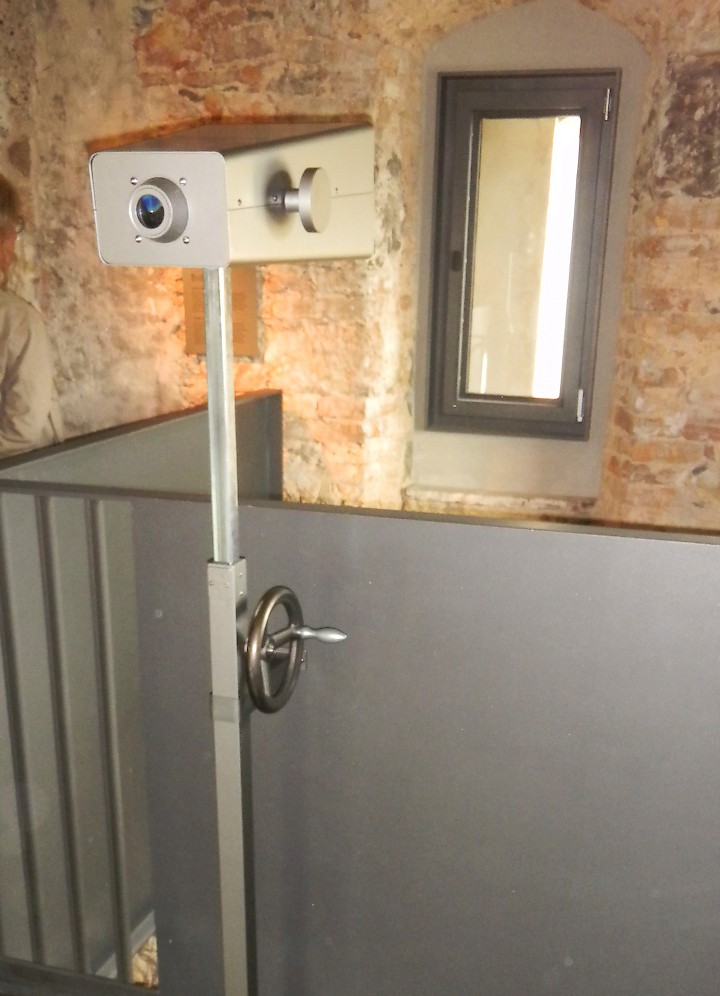 Auf einer Walze mit integrierter Leuchte sitzen sechs Ansichten aus dem Rententurm in verschiedenen Zeitalter, höhenverstellbar Planung: Arge Gillmann/Schnegg Basel