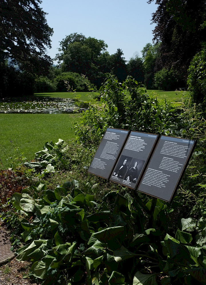 Die Ständer und Rahmen für die Beschilderung bestehen aus Schwarzstahl (roh) und rosten im Laufe der Zeit. Gestaltung: Stauffenegger + Stutz, Basel